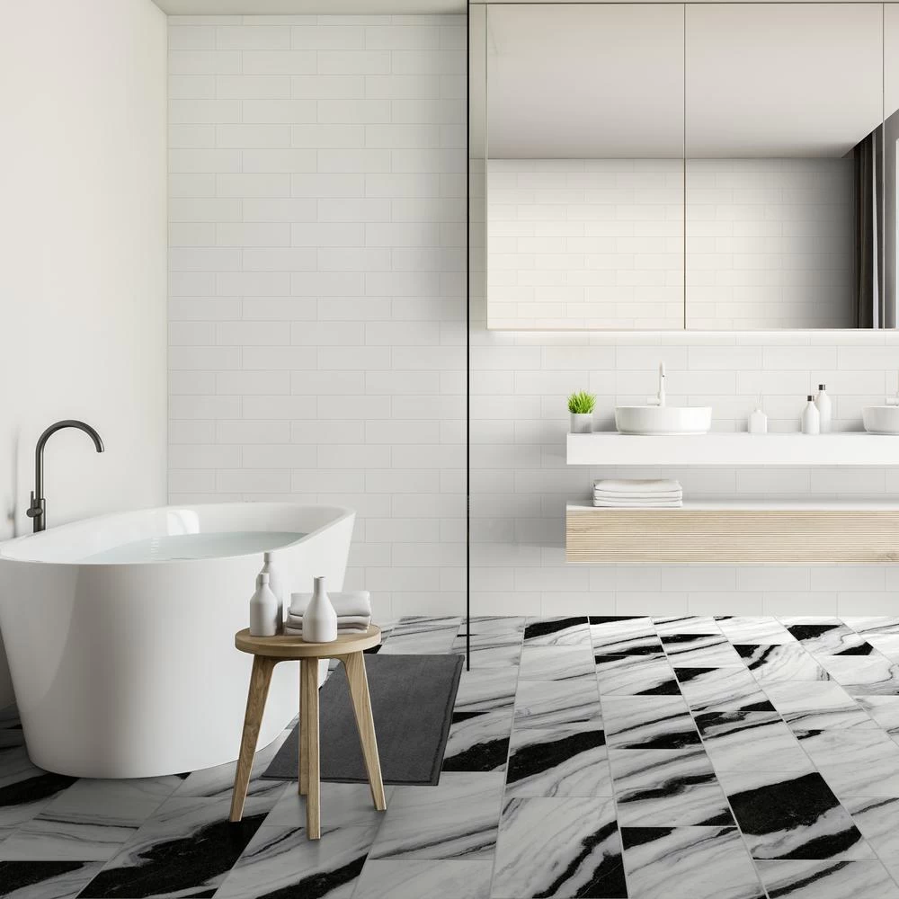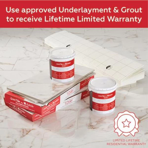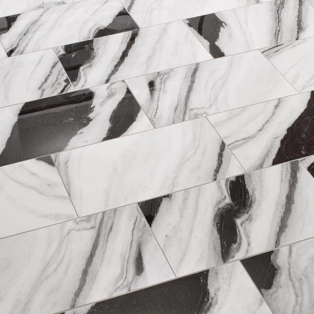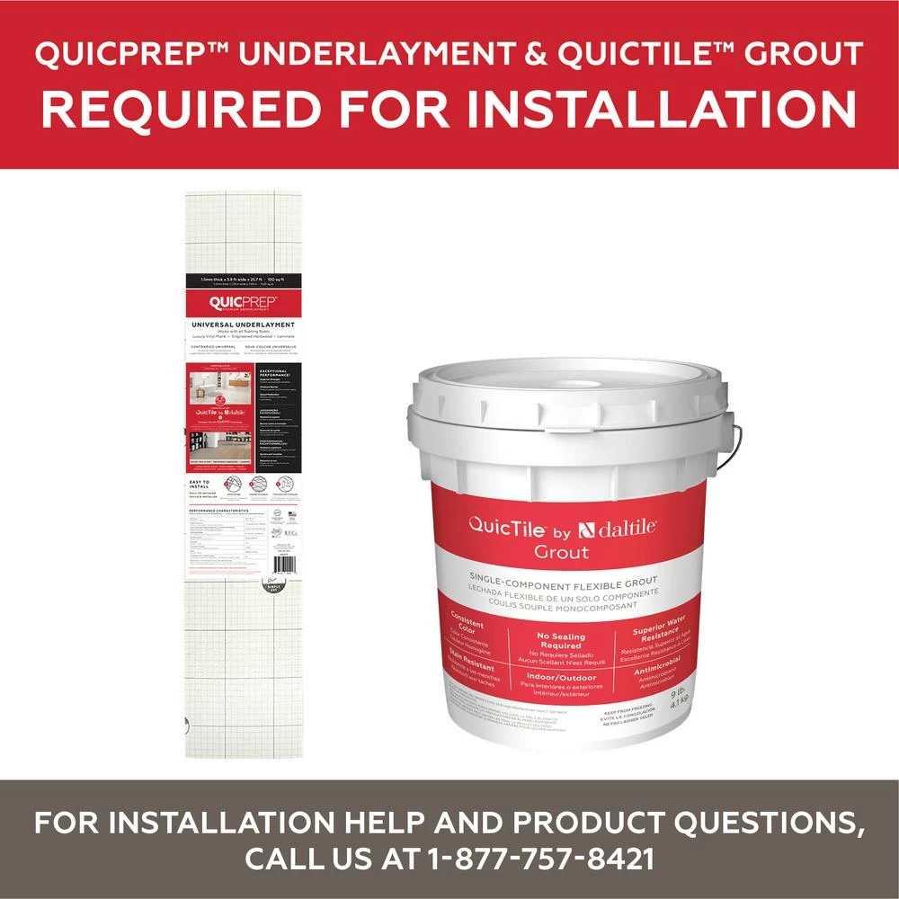 QuicTile by Daltile 12 in. x 24 in. porcelain floor tile in polished Panda Marble is tile reinvented. With the patented floating floor system, you can install real porcelain tile in one day. It takes just 3-easy steps – lay down underlayment, click the tiles together, and grout and go. It’s quick, it’s easy, and it’s beautiful. The polished Panda Marble tile is a bold and luxurious marble look giving any room a modern update. QuicTile offers maximum durability; it’s waterproof, stain-proof, dentproof and scratch-resistant. Use this marble look in a bathroom or entryway to create a beautiful and eye-catching space.
