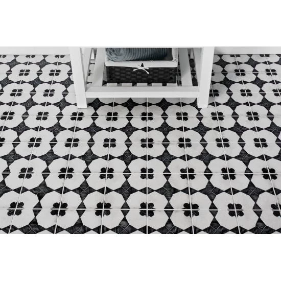 Designed to replicate hand-painted cement tiles, the Enchante Collection delivers the aesthetic of encaustic cement tile in a low maintenance, durable color-body porcelain. Select one of our 8″ x 8″ tiles in one of three patterns: Charm, Splendid, or Moderno.