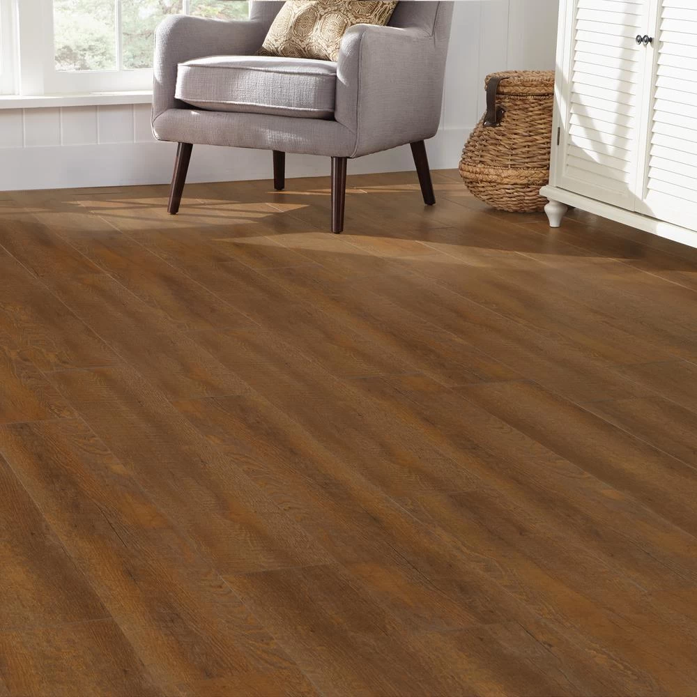 Home Decorators Collection Vinyl Plank Flooring gives you the richness and deep texture of hardwood flooring with luxurious embossing for a beautiful look and feel. This product features enhanced ceramic bead surface coating for scratch resistance. Dramatic 7.5 in. x 47.6 in. planks are durable and quiet underfoot. Home Decorators Collection simple angle-drop-lock installation system allows for easy, no-glue installation, saving time, effort and money. The floating floor installs over most existing surfaces including concrete, tile, wood and vinyl. This flooring is both phthalate-free and formaldehyde-free to ensure product safety. With Home Decorators Collection, you can transform any room in your home quickly and easily.