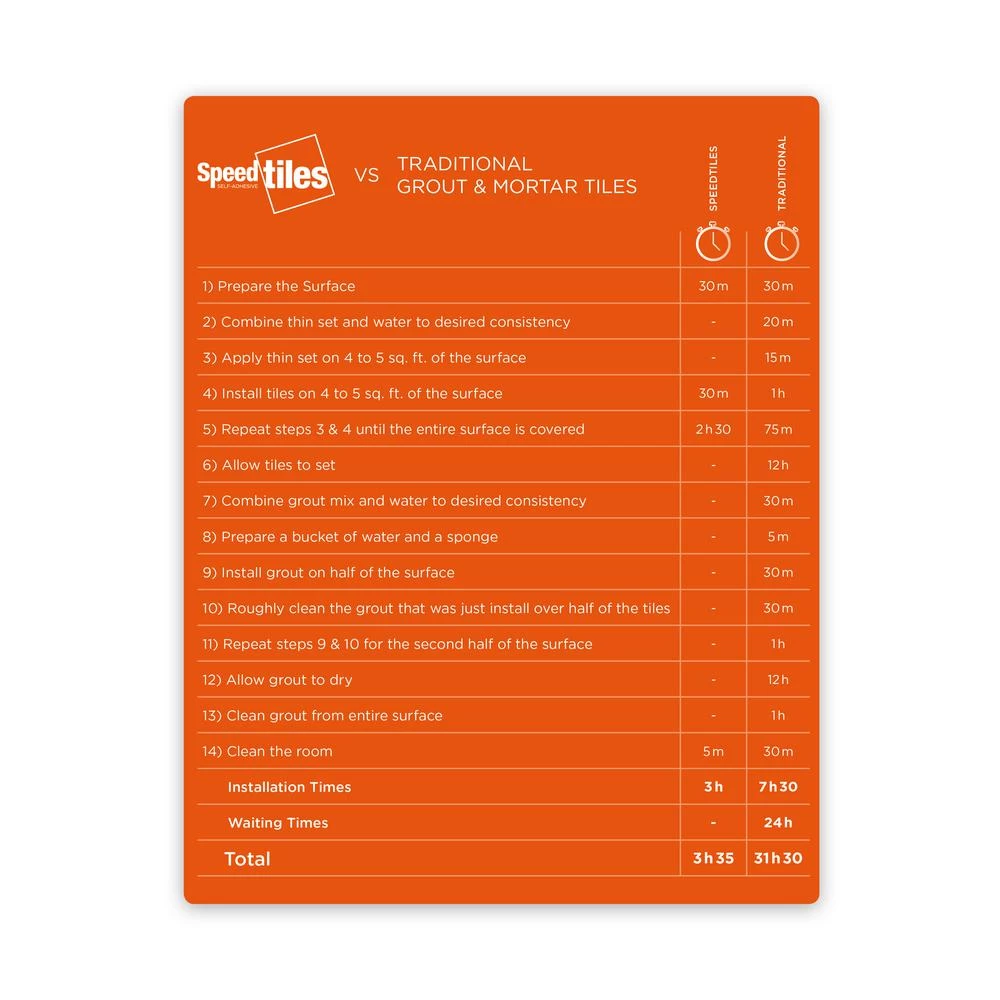 Opt for the quality and impeccable finish of SpeedTiles stone self-adhesive tiles: a simple, easy-to-install solution to update your decor. Equipped with a powerful, time-tested adhesive, these high-quality wall tiles are easy to handle, cut and maintain. Just peel the film and stick. Made with proven materials, SpeedTiles are heat and moisture resistant, and can be installed on almost any wall in the house. Carry out your project without glue or grout, hassle free, at a fraction of the cost.
