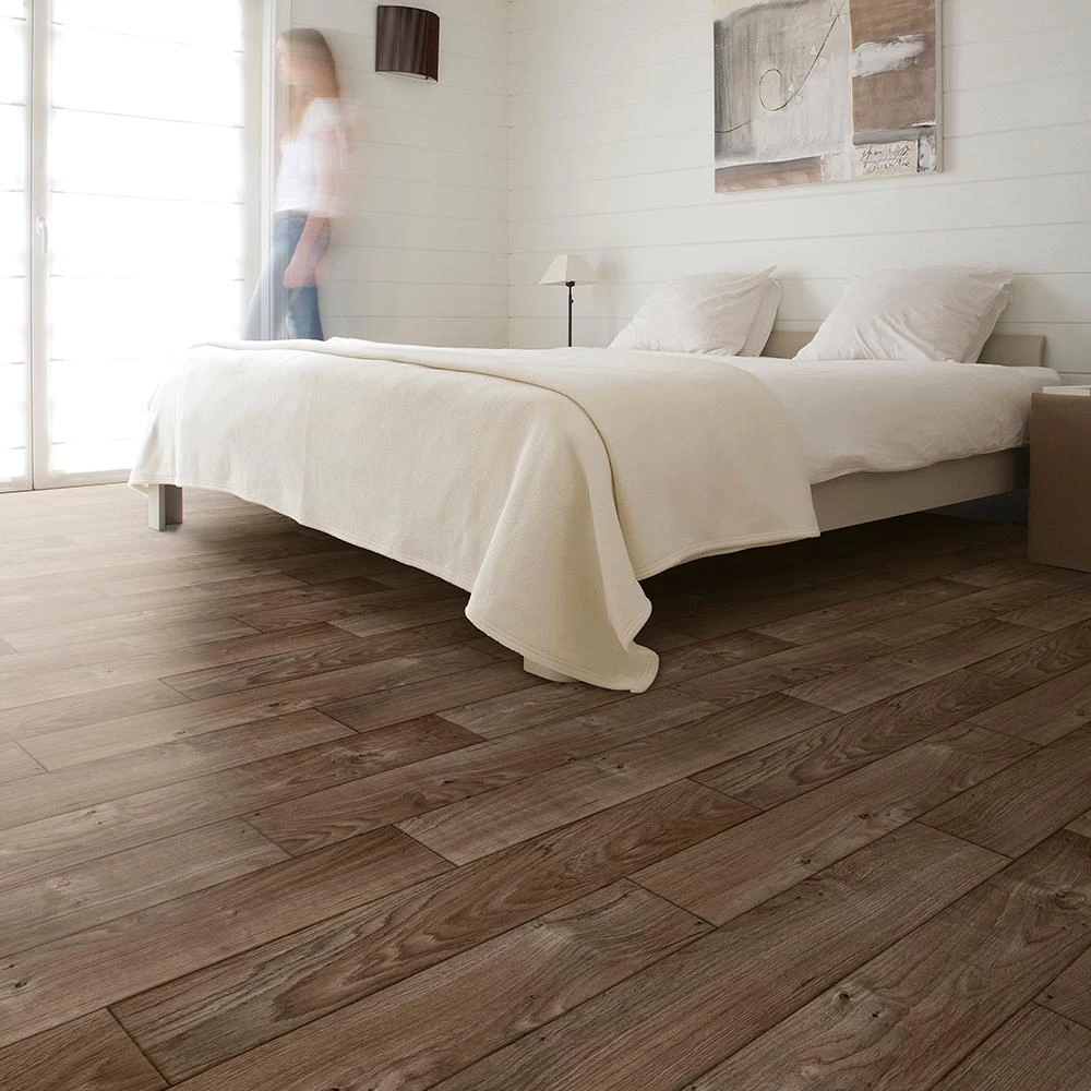 Ash Brown Oak sheet vinyl is part of the Waterford Collection by IVC. This rustic oak wood design features warm brown color tones and a rough wood texture. Backed by a 10-year residential warranty this beautifully crafted, waterproof product features easy installation, an easy-to-clean surface and exceptional comfort. The built-to-last design contains a urethane wear layer that provides the toughest protection against common household accidents, ensuring long-lasting appearance and functionality.