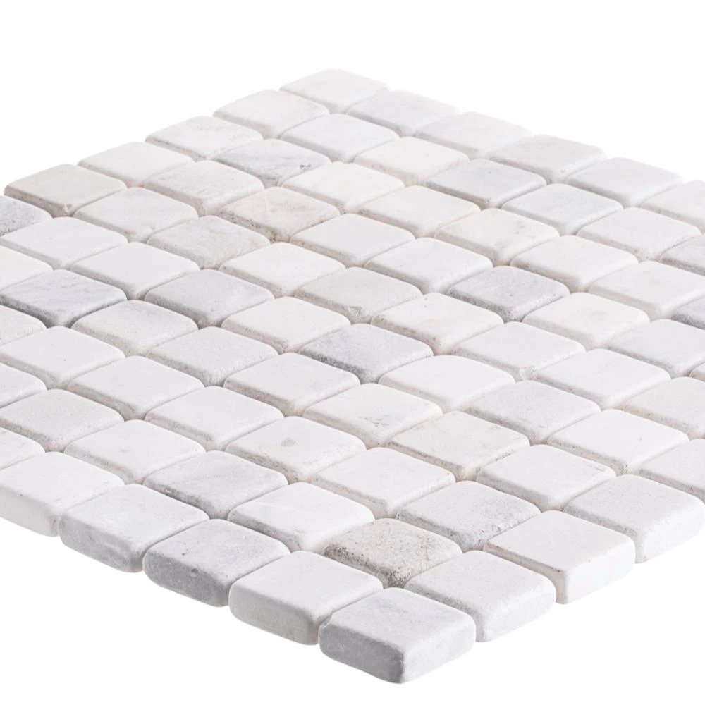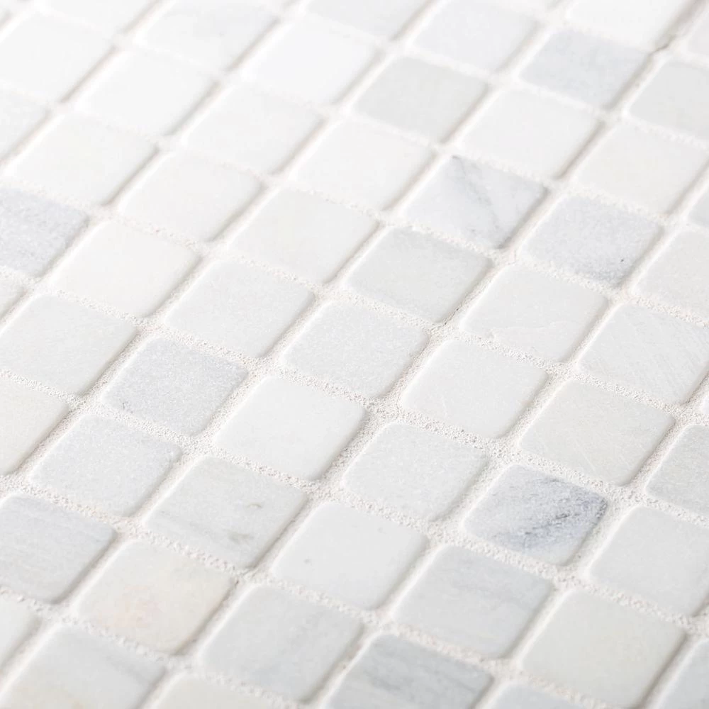 Carrara White 11-3/4 in. x 11-3/4 in. Marble Mosaic Tile adds a touch of luxe to your bathroom or kitchen. This natural stone mosaic features mini marble squares in a honed finish adding appeal to a classic neutral. Combine with natural stone field tiles to create impressive installations. Recommended for kitchens, backsplashes, showers, accent walls, tub surrounds and vanities. For best installation results, use white polymer-modified thinset and sanded grout. A penetrating sealer is also recommended before grouting.