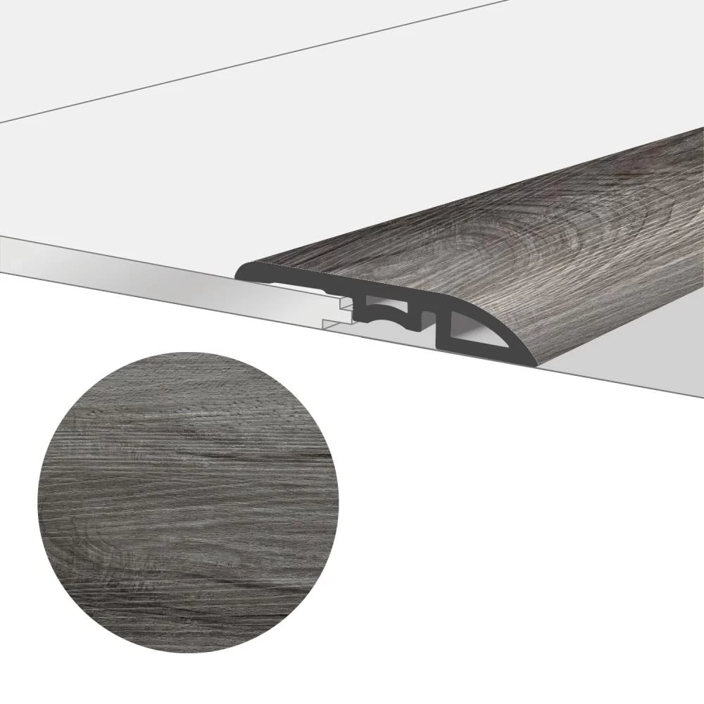 Used to transition from vinyl flooring to flooring surfaces of different heights such as hardwood flooring with vinyl, tile or low pile carpeting