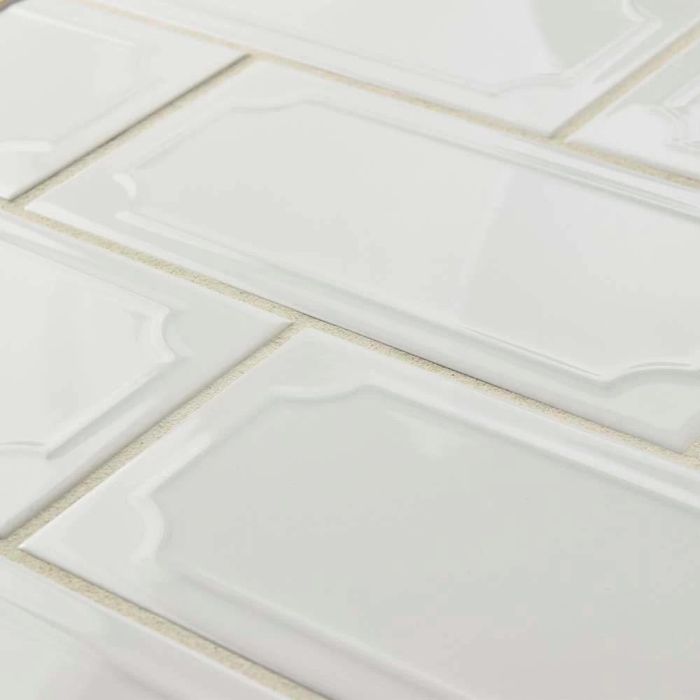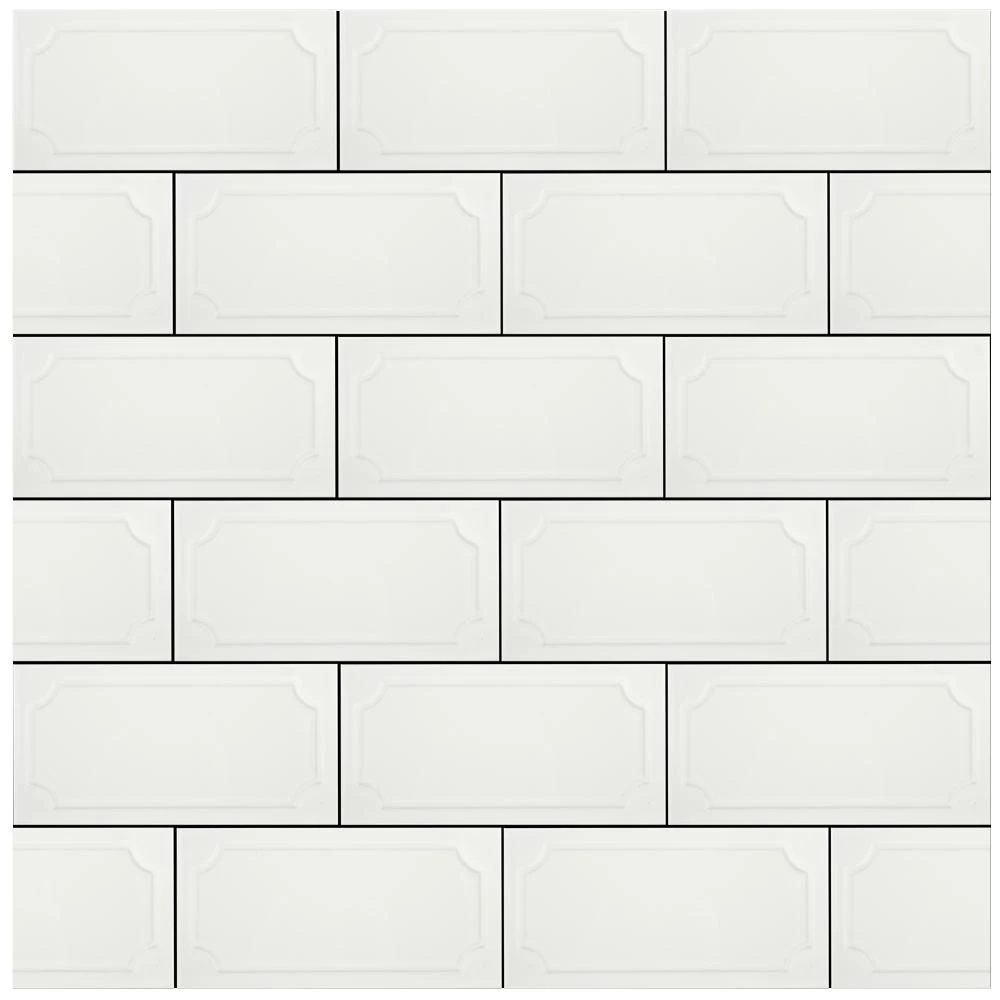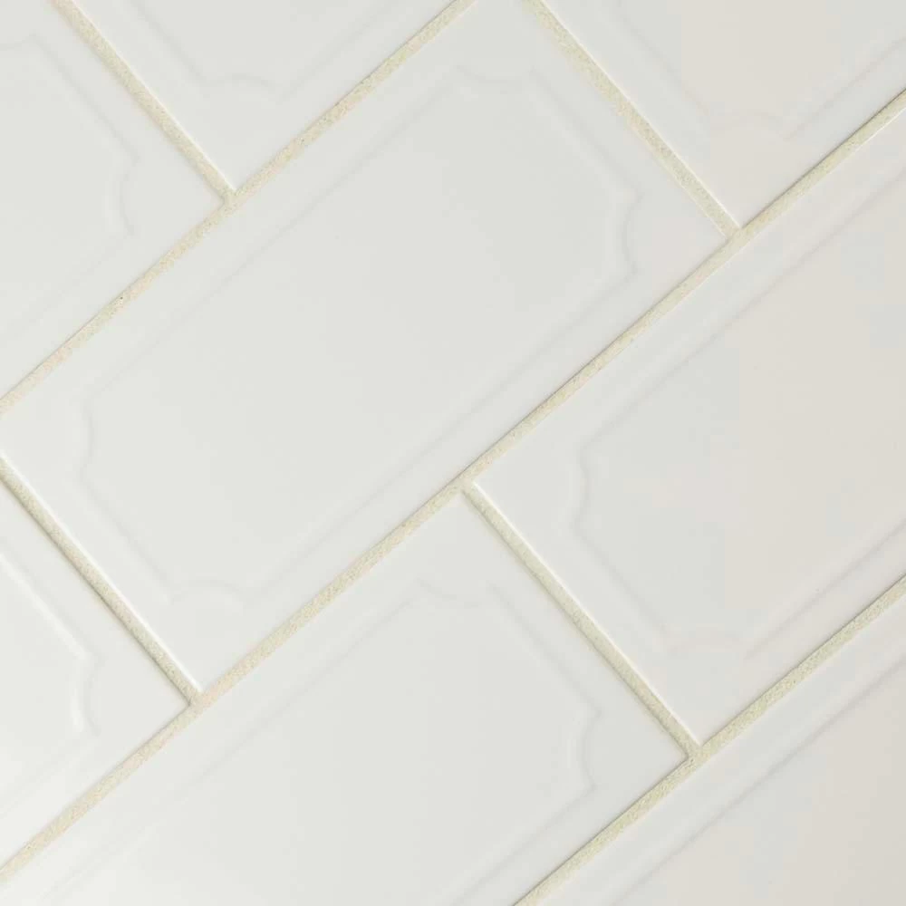 Glamourous design radiates from the Merola Tile Santorini Blanco 4 in. x 7-7/8 in. Ceramic Subway Wall Tile. This enlarged subway tile features a framing raised decoration that speaks to modern luxury, offering striking definition and dimension to each tile. The crisp, glossy white glaze is versatile, offering the ability to be used in a variety of decors ranging from contemporary to traditional. This classic tile is an elegant focal point to any backsplash or bathroom wall in residential and commercial areas.