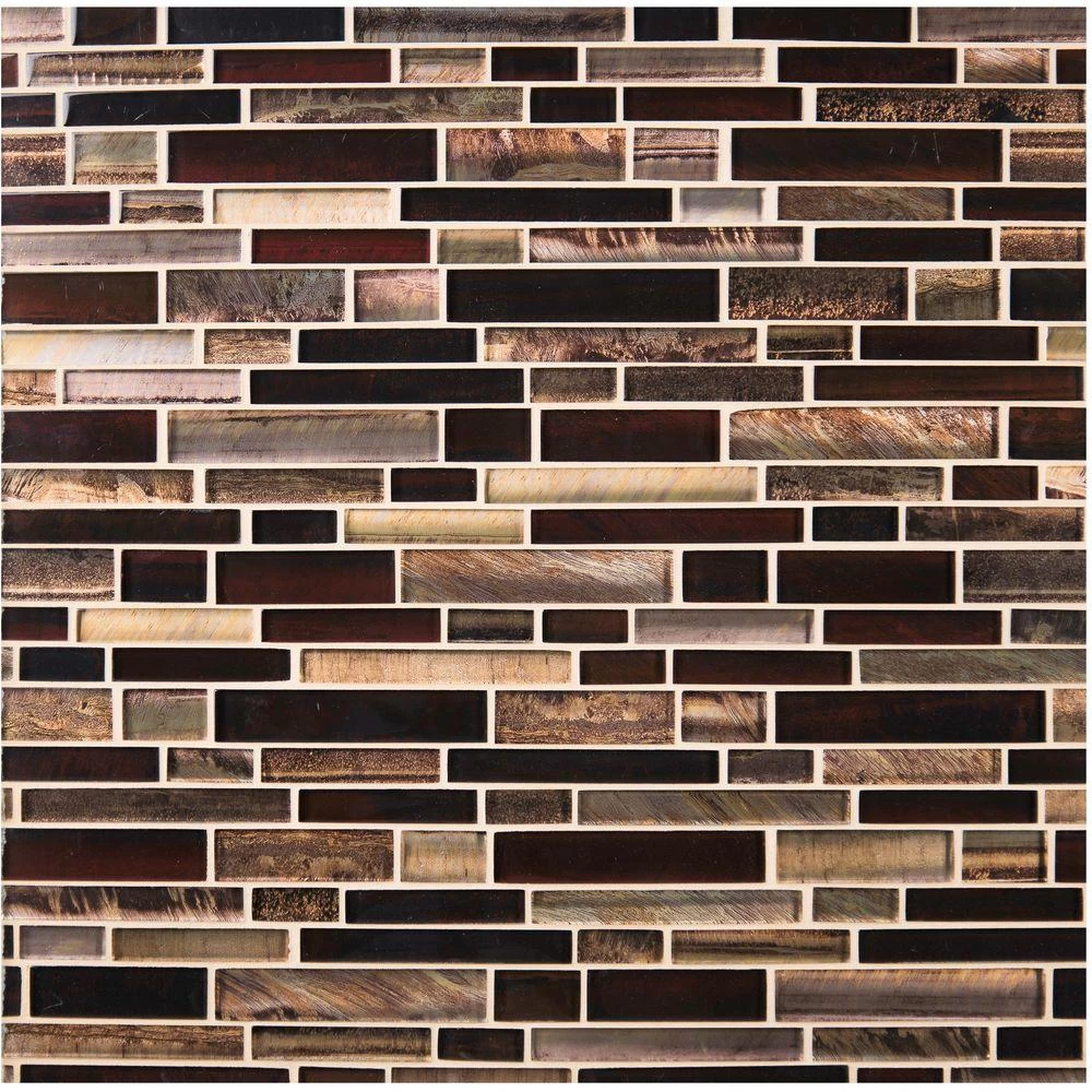 Add a splash of distinction to your decor with this 12 in. x 12 in. x 8 mm glass mesh-mounted mosaic floor and wall tile. This Grade 1 tile lends a unique pattern to your floors, walls and countertops. The warming glass blend pieces are sized on a mesh sheet for Easy installation. This flooring option is designed with brown tones and shimmers of metallic to offer a pop of color. Offering supreme style and strength, the impervious, frost-resistant tile absorbs less than 0.5% of water. Included per case are 10 pieces.
