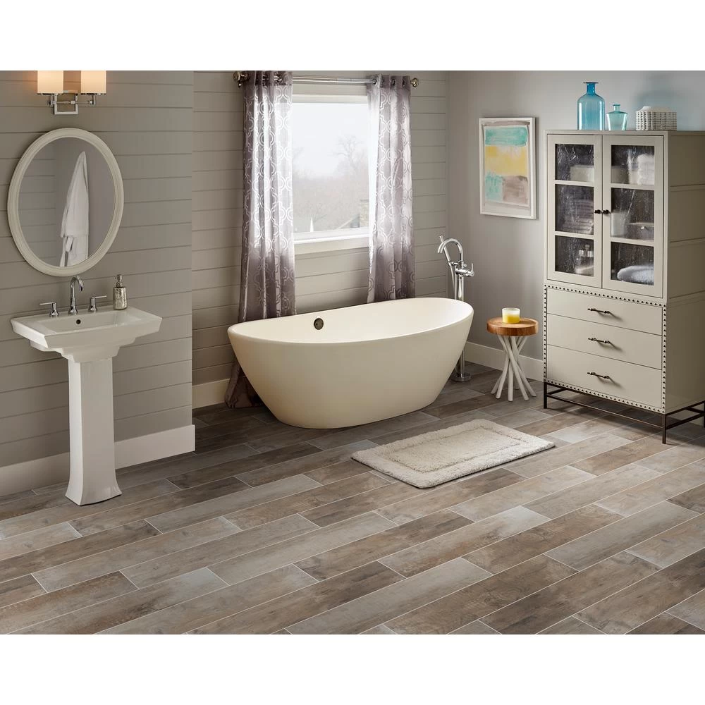 Barnwood Cognac 8 in. x 36 in. Glazed Porcelain Floor and Wall Tile combines a glazed, matte finish with a low sheen and subtle variations in tone to create a contemporary look that perfectly suits a variety of decorative schemes. This tile is created by high definition digital printing using an ink-jet technology to create a wood looking replica. This rectangular tile is constructed from durable porcelain material, is suitable for installation on walls, floors and countertops and features an impervious water absorption rating.