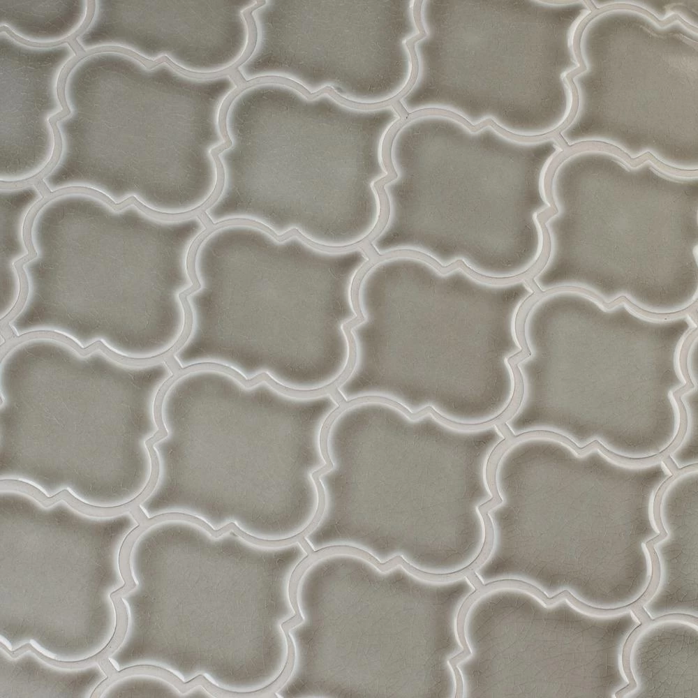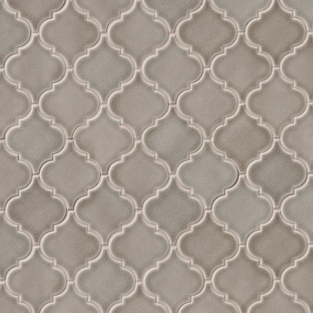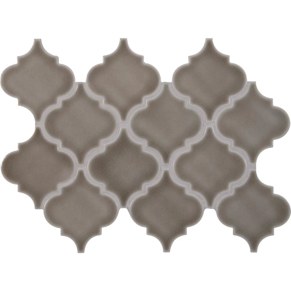 Add a splash of distinction to your decor with this 10-1/2 in. x 15-1/2 in. x 8 mm. glazed ceramic mesh-mounted mosaic floor and wall tile. This Grade 1 tile lends a unique, arabesque pattern to your floors, walls and countertops. The warming glass blend-pieces are sized on a mesh sheet for easy installation in bathrooms, kitchens and other residential or commercial spaces. This flooring option is designed with trendy gray shades, a crackled look and glossy ceramic. Offering supreme style and strength, the impervious, frost-resistant tile absorbs less than 0.5 percent of water. Included per case are 10-pieces.