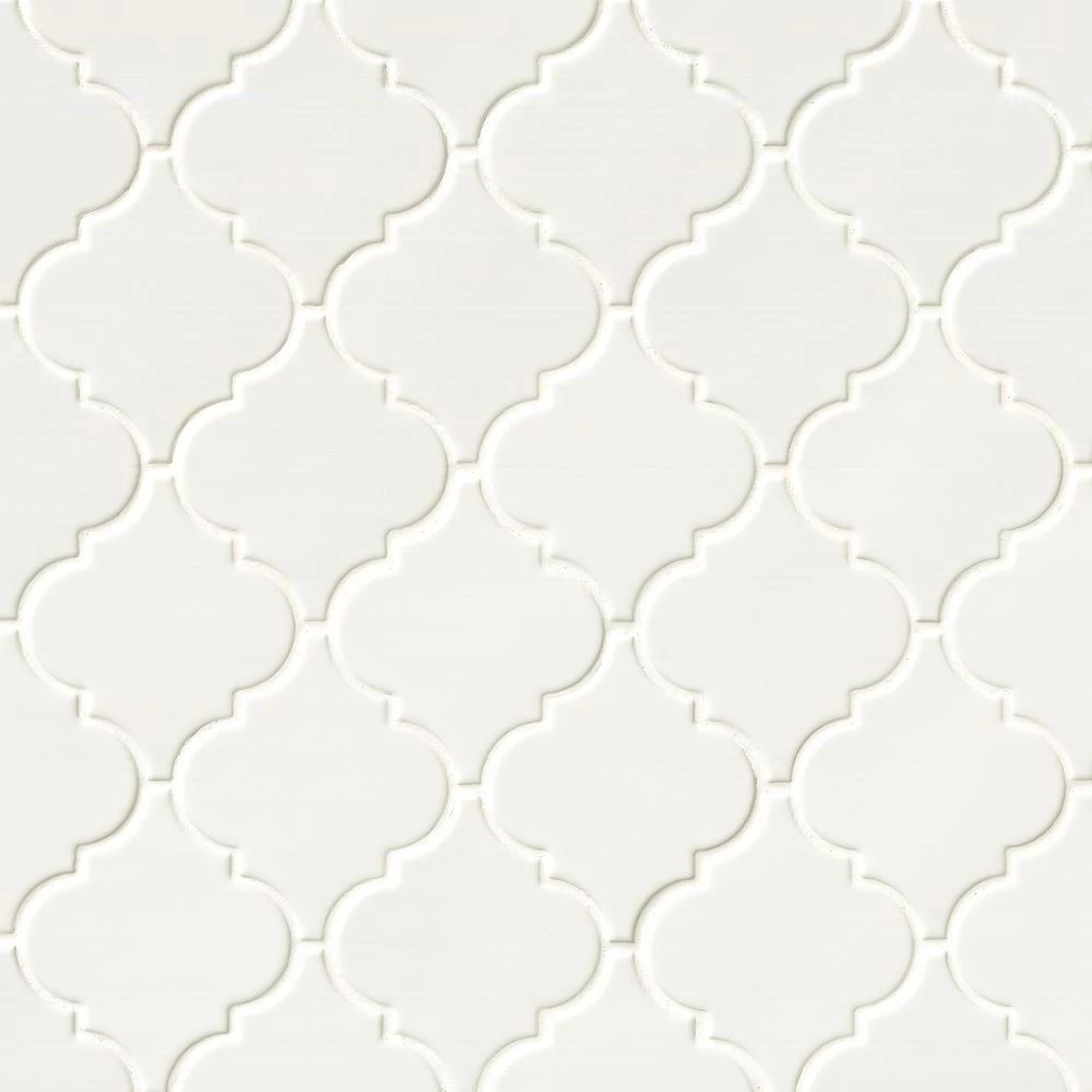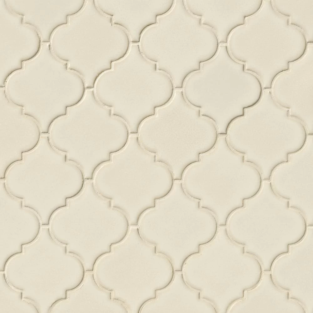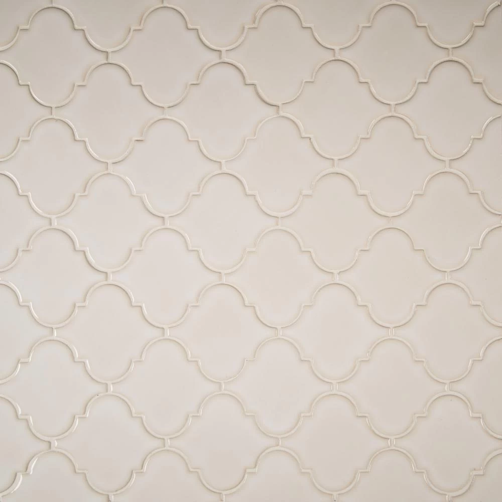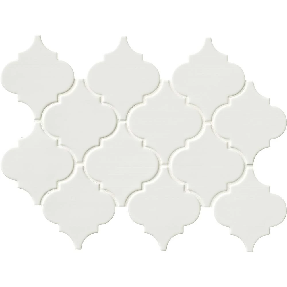 - 10-1/2 in. W x 15-1/2 in. L x 8 mm thick mesh-mounted mosaic, arabesque shaped pieces