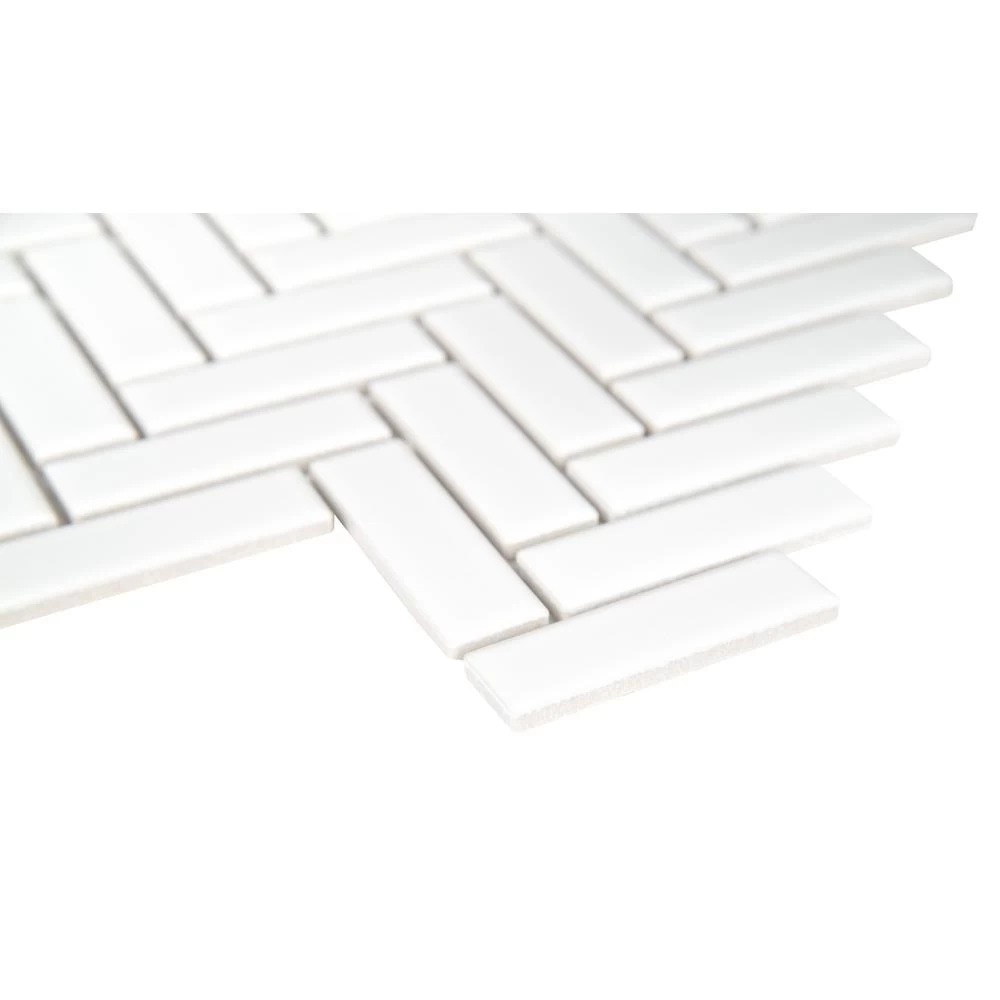 MSI’s Retro Herringbone Bianco porcelain tile offers a soft, neutral look that complements nearly any design scheme. It’s classic yet on-trend pattern and glossy finish create visual interest without overpowering its a perfect choice for updating kitchens and baths. A welcomed addition to both homes and light use commercial spaces, use it as wall tile, bathroom or kitchen backsplash tile, or on floors or countertops. Mix and match White Glossy Herringbone tile with other tiles from MSIs Domino Collection for easy to achieve designer looks. These tiles are mounted on mesh-backed sheets for simplified installation and a professional finish.